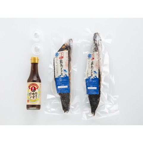 鰹タタキ2本(約計700g)、ぽん酢200ml、塩6g×2個