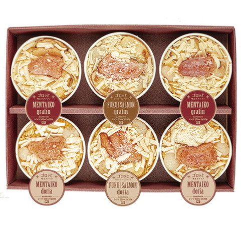 ふくいサーモングラタン・ふくいサーモンドリア×各1個、辛子明太子グラタン・辛子明太子ドリア×各2個