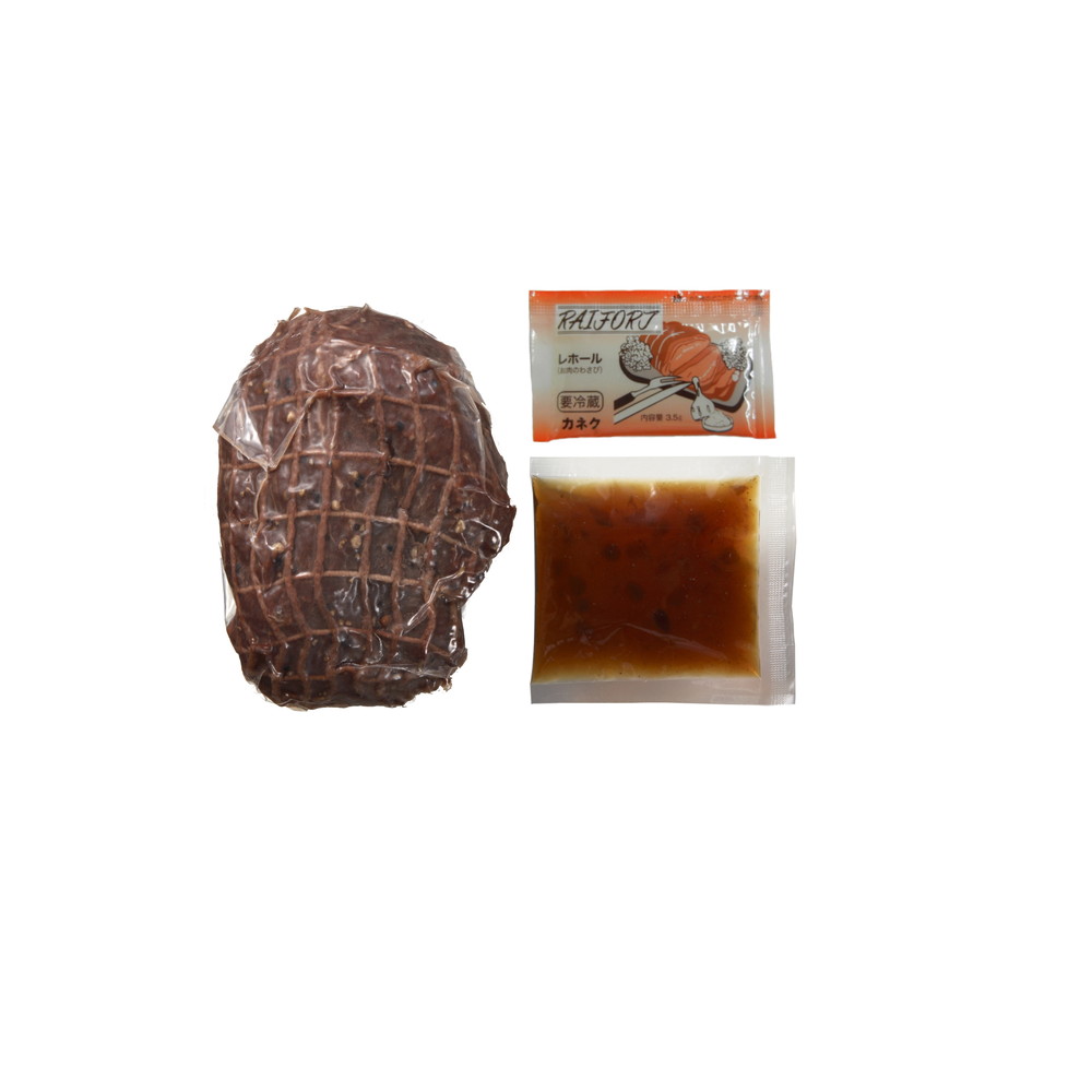 「タケダハム」ローストビーフ140g、ソース20g、レホール3.5g、「山野井」炭で焼いた焼き豚180g、「小浜海産物」小鯛ささ漬70g、「福津いいざい」福岡県産冷凍あまおう250g
